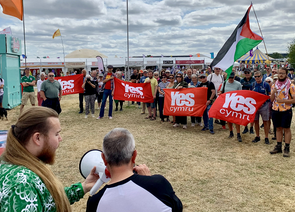 Supporters gathered at the YesCymru stand before heading to the Welsh Labour stand, where Chair Phyl Griffiths and Director Rob Hughes delivered powerful speeches demanding control of our own resources.
